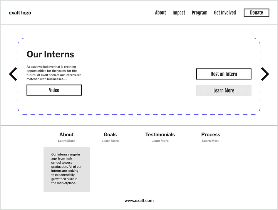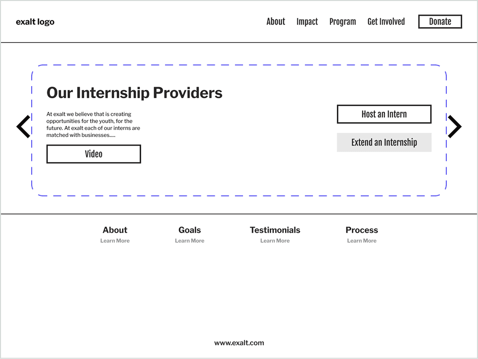 Using the storyboard as a guide, we restructured the original single-page portal into two purpose-driven experiences: a provider page detailing the process, expectations, and past partnerships and a newly introduced intern page highlighting intern stories and testimonials.